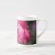 Elegant Bone China Mug featuring a photo of beautiful pink rose on dark green background. Pink rose symbolises gentle love, affection, and appreciation. A glamourous romantic accent to your kitchen, a stylish gift for any special occasion (Saint Valentine's Day, Mother's day, Grandparents Day, birthday).