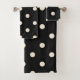 Oversized off white polka dots on a distressed antique black background makes a bold and playful statement in your bathroom.