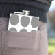 Cute and trendy Big Polka Dots Flask. This design features over-sized big circle polka dots in grey and white. Text can be added to this design to give it a personal touch.
