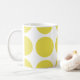 Cute and trendy Big Polka Dots Mug. This design features over-sized big circle polka dots in yellow and white. Text can be added to this design to give it a personal touch.