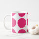 Cute and trendy Big Polka Dots Mug. This design features over-sized big circle polka dots in pink and white. Text can be added to this design to give it a personal touch.