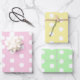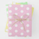 A set of three different colours of classic big polka dot patterns in pastel pink, green and yellow perfect for baby showers, Easter, birthdays and more.