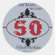 This chic and bold design has an impact from first glance. Soft grey field with a black crest and a vibrant red 50 is intersected by a red line. A versatile 50th Birthday Sticker to use as a return address label, on favour bags, just about anywhere.