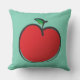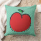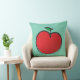 Big Red Apple Drawing on a Pale Green Background Cushion