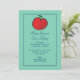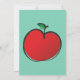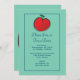 Generic party invitation. A simple drawing / illustration of a red apple. A plump juicy red apple with a thick black outline and a single green leaf on a stem.. The background is a light green colour with a thin dark blue border. Personalise / customise with your party details.