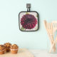 Safely handle baking trays, cookie sheets and muffin tins from the oven with this pot holder with black trim that features the photo image of a big, red Dahlia bloom. A lovely, floral design! Select your pot holder backing style.