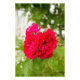 Big red roses in the garden. The photo was taken in May 2018. The poster is suitable for interior design.