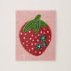 Big Red Strawberry is plump, red and cutely patterned fruity piece over a pink background.