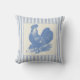 Great looking blue and white pillow is an old fashioned throwback to a simpler time. The background has the look of ticking, and there's a country farm rooster in the centre on the front. A wonderful addition to your cottage chic or Parisian country decor.