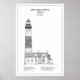 This minimalist illustration showcases the elegant form of the Big Sable Point Lighthouse, one of Michigan’s most iconic maritime landmarks. Set against a clean white background, the artwork highlights the lighthouse’s striking architectural details—from its towering cylindrical brick structure to the adjoining keeper’s dwelling at its base.