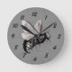 Big Scary Bee Black White Illustration Skull Wings Round Clock