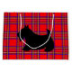 A bright red plaid pattern decorate this festive, Scottish Terrier gift bag. This bag is great for Christmas, the holidays, men, women, a birthday, etc... The design is from original art.
