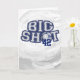 Big Shot Soccer Ball design features curving collegiate style lettering with the O in "shot" as a painted blue and white soccer ball, futball, or football. Great for sports fans of all ages.