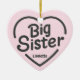 Honour a cherished family connection with the "Big Sister Celebration Ornament." Crafted from fine ceramic, this ornament showcases the heartfelt title "Big Sister" inscribed within a loving heart, creating a timeless keepsake. It's a delightful way to recognise and celebrate the special bond between siblings during the holidays or any time of year. The design allows for personalisation with a name at the bottom, making it an exclusive and sentimental gift for any proud big sister.