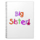 Big Sister keepsake boxes, tiles, ornaments, notebooks, pillows, mugs, stickers, magnets, and more with bright green, pink, orange, and purple text design!