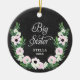 Big Sister Personalised Bohemian Floral Wreath Ceramic Ornament. Personalise with your custom information on both front and back.