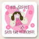 Big Sister Still the Princess T-shirts, mugs, bags, cards, buttons, stickers, key chains, pillows, and other big sister apparel and gifts with an adorable fairy princess on a big pink heart background and little pink flowers with text that reads "Big Sister Still the Princess!".