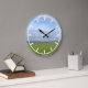 Scottish Country scene clock. Big blue sky and a green field. Landscape view showing fields and a clear blue sky. Image is from the Isle of Bute, in Scotland.