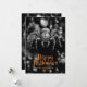 Happy Halloween card featuring a scary spider on the web. Easily personalise this watercolor Halloween card with your family name and text.