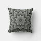 A multi-pointed star motif in muted shades of gray and white. Back of the pillow is plain, tarry.