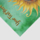 This tissue paper for your gift wrapping or crafts has a big yellow and brown sunflower with a sweet little girl's face in the centre of the flower on a vibrant watercolour look green. Customise your text with the template.