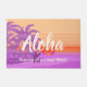 Peach, coral and violet colorway. The message of Aloha welcomes your visitors to your own tropical paradise. Inspired by the boardshorts and aloha shirts of the sixties, this pattern uses pin- stripes to create the shoreline as the surfers wait for the break at Big Sunset on the North Shore of Oahu. You can customise the message.