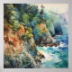 This striking print showcases the rugged, scenic beauty of Big Sur's famous rocky cliffs and woodlands on California's central coast.