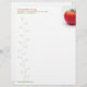 A beauty shot of a ripe red tomato dominates this letterhead geared towards nutritionists, food scientists, weight loss experts or other health professionals. A watermark of a growing plant snakes up the left side of the paper. Available with matching products.