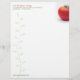 A beauty shot of a ripe red tomato dominates this letterhead geared towards nutritionists, food scientists, weight loss experts or other health professionals. A watermark of a growing plant snakes up the left side of the paper. Available with matching products.