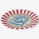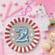 A giant, number two is surrounded by the classic circus red and white awning stripes and celebrates your child's second birthday with vintage flair on these paper party plates. Classic red, white and blue are gender neutral perfect for any child.