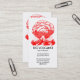 A business card template with an original pen and ink style illustration depicting an erupting volcano with billowing smoke, ash, balls of molten rock raining from the sky and rivers of hot lava. Also has some trees and a worried looking house. Main company details on the front, with name and personal contact details on the back.Can be customised in lots of ways suitable for many types of business, or could be used as a profile card.