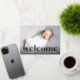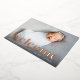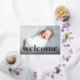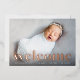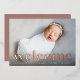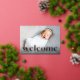 Fresh and modern birth announcement cards feature a full bleed horizontal or landscape orientated photo with "welcome" overlaid in rose gold foil lettering. Personalise with baby's name and birth stats beneath, and add three additional photos to the back, along with a personal message.