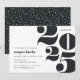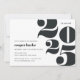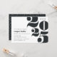Modern graduation party invitation features "2023" in oversized lettering, with your party details aligned at the left. Invitations reverse to white confetti dots on inky off-black.