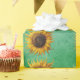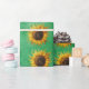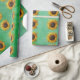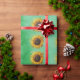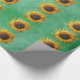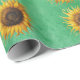Big yellow Sunflowers Fancy Petals on Green Wrapping Paper