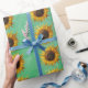 This wrapping paper roll is done in shades of green with big yellow and brown sunflowers with fancy petals.