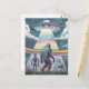 Bigfoot, Alien, and Unicorn with a UFO Postcard