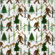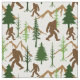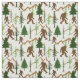 Bigfoots hiding in the forest fabric, with pine trees and mountain ranges on a white background