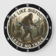 Inject some legendary humor and a powerful message into your home with the Bigfoot "Leave No Trace" clock. This unique timepiece features a high-definition, retro-style graphic of the elusive Sasquatch diligently cleaning up the forest, carrying a trash bag and picking up litter. Set against a misty evergreen mountain backdrop, the design is framed by bold, rugged typography that reads "BE LIKE BIGFOOT - LEAVE NO TRACE". While the artwork captures the textured, screen-printed aesthetic of vintage national park posters, this is a durable high-definition graphic application on a premium round clock face. It serves as a prestigious and lighthearted focal point for a cabin, mudroom, or any space belonging to a dedicated nature lover with a sense of humor.
