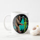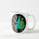 This whimsical image illustrates a friendly encounter between two legendary beings: Bigfoot and an alien. The scene, set against a starry night sky with silhouettes of pine trees, shows Bigfoot and the alien shaking hands under the beam of a UFO hovering above. Bigfoot, covered in brown fur, stands on the left while the green, humanoid alien with a large head and black eyes stands on the right. The combination of these iconic figures in a peaceful meeting adds a playful twist to both myths, making it a fascinating and humourous piece for enthusiasts of the unexplained.