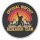 Bigfoot is looking happy as he walks along. This is a retro sunrise design in yellow, orange and red and looks great on a black or dark background.
