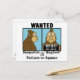Sasquatch, aka Bigfoot is wanted for failure to appear in this funny wanted poster style design.