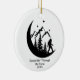 This ornament features a silhouette of Bigfoot walking through a forest with mountains and a sky full of stars on the foreground surrounded by a crescent moon, capturing the spirit of wilderness and mystery. Below the image is a funny phrase "Squatchin' Through the Snow" and an option to add the year. This design invokes an inspiring a sense of wonder in the unknown making it ideal for adding a unique, artistic touch to your Christmas Tree. Whether you’re a Bigfoot enthusiast or simply drawn to nature-inspired designs, this ornament is a perfect way to express your adventurous spirit and remind yourself to always believe in the extraordinary. Customise it with a different phrase and add a custom year.