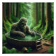 Bigfoot Sasquatch Taking a Bath in the Woods Poster