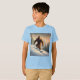 100% cotton so perfect for summer, It is a nicely designed t-shirt, the fabric is soft and the seams finished well, the body of the t shirt has no side seams. I bought a medium size for my two grandsons, aged 9 and 8 it will be slightly big on them but I would rather that than too small