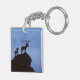 A watercolor painting of bighorn sheep silhouetted on a cliff adorns this customisable keychain!