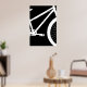 This contemporary style poster features an oversized white bicycle front silhouette on a black background creating a geometric, modern look. The background colour can easily be changed by clicking "Edit Design". This print is shown in a white frame (not included).