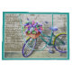 Step up your gift-giving with this pretty gift bag that features a teal-coloured bike with a large basket filled with colourful flowers.