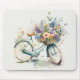 Bicycle with big bouquet of flowers in a watercolor effect.
