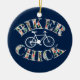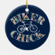 Biker chick in heart filled text with a bicycle is a unique design for road and mountain cyclists.