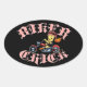 Cartoon chick riding a red motorcycle and flipping the bird, with, "Biker - Chick" in Gothic lettering. T-shirts, hoodies, cards, gifts.